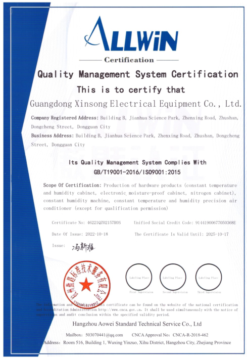 質(zhì)量管理體系認證證書英文板